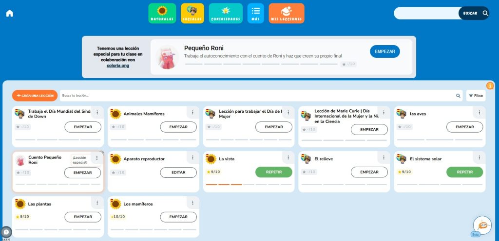 Por eso hemos creado Mis Lecciones, una funcionalidad dentro de nuestra plataforma educativa pensada para que puedas crear clases completas de forma rápida, en un mismo lugar y con contenidos listos para usar.